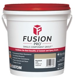 A professional grade, single component sanded grout that requires no mixing and is ready to use on ceramic, porcelain, glass tiles and polished natural stone for exterior and interior wall and floor use. Fusion Pro is a high performance, patent pending advanced acrylic plus silicone resin formulation that provides superior color consistency as well as stain resistance and features built-in Microban antimicrobial product protection to inhibit the growth of stain causing mold and mildew on dried grout.